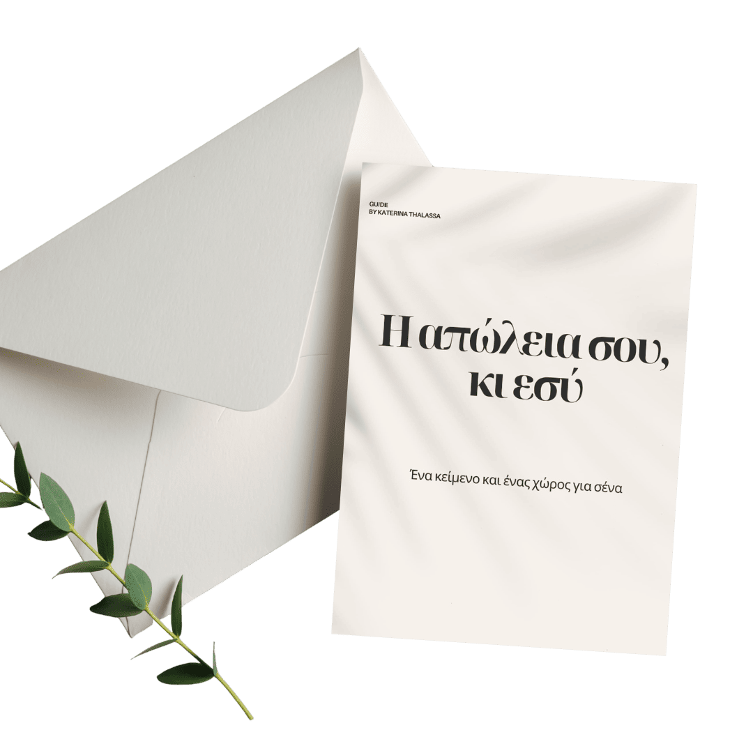 Το workbook θα σου σταλεί στο email σου. Μπορείς να το ανοίξεις όποτε νιώσεις έτοιμη. Ή όποτε χρειαστείς έναν ήσυχο χώρο που να σε περιμένει, χωρίς απαιτήσεις.
